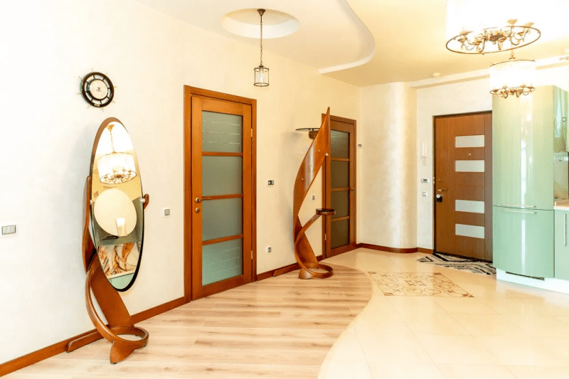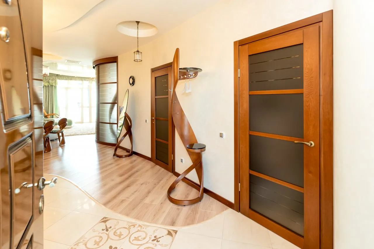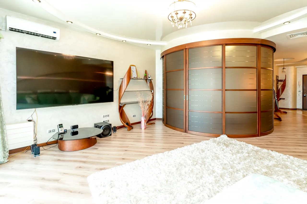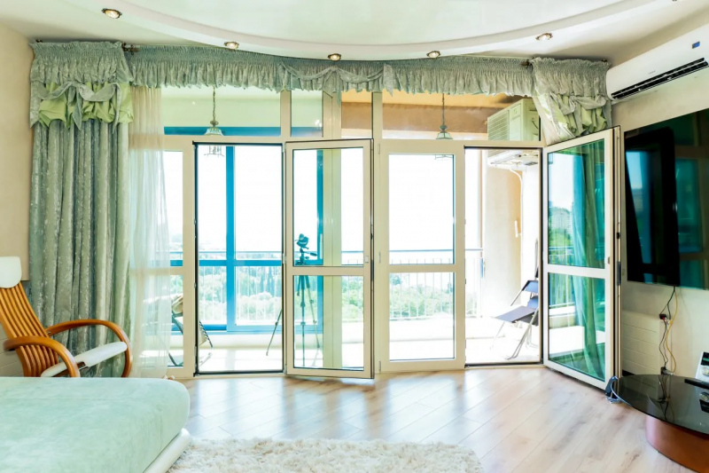 В апартаментах есть два балкона с креслом-качалкой, двуспальная кровать и диван, стол, стулья, шкаф, журнальный столик, сплит-система, телевизор, проведен Wi-Fi. Ванная комната оборудована душевой кабиной, стиральной машиной, раковиной, биде, сушкой для белья. Гостям предоставляются утюг, фен, набор полотенец и постельного белья, тапочки.